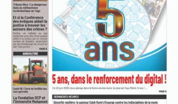 Ce 22 juin 2020 nous plonge dans le 5ème anniversaire du journal Togo Matin. 5 ans ! Pour marquer la date, il n’y aura ni une célébration particulière, ni une festivité marquante. Quoiqu’un jubilé de bois, cela se célèbre. Les mesures barrières en vigueur, les obligations de distanciation en l’occurrence, nous astreignent à ce sevrage. Pour rester en … Lire la suite de 5 ans, dans le renforcement du digital !