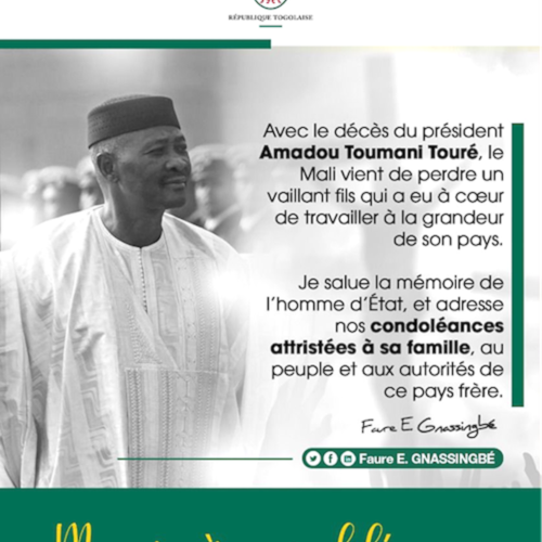 Le Président de la République, Faure Essozimna Gnassingbé a adressé ce mardi un message de condoléances au Mali, quelques heures après l’annonce de la disparition de son ancien président, Amadou Toumani Touré, décédé dans la nuit du lundi au mardi à 72 ans. « Avec le décès du président Amadou Toumani Touré, le Mali vient de perdre un vaillant fils qui ...