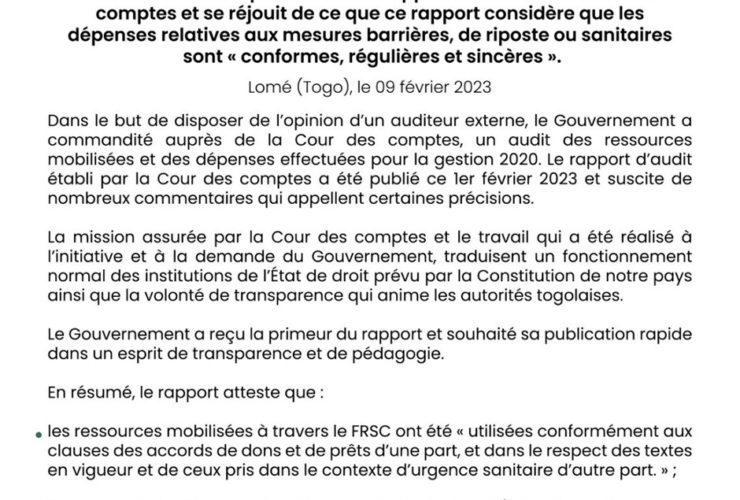Au Togo, le Gouvernement a, dans le but de disposer de l’opinion d’un auditeur externe, commandité auprès de la Cour des comptes, un audit des ressources mobilisées et des dépenses effectuées dans le cadre de la gestion 2020 du Fonds de Riposte et de Solidarité Covid-19 (FRSC). Le rapport, produit par l’institution, a été publié le 1er février dernier, à ...